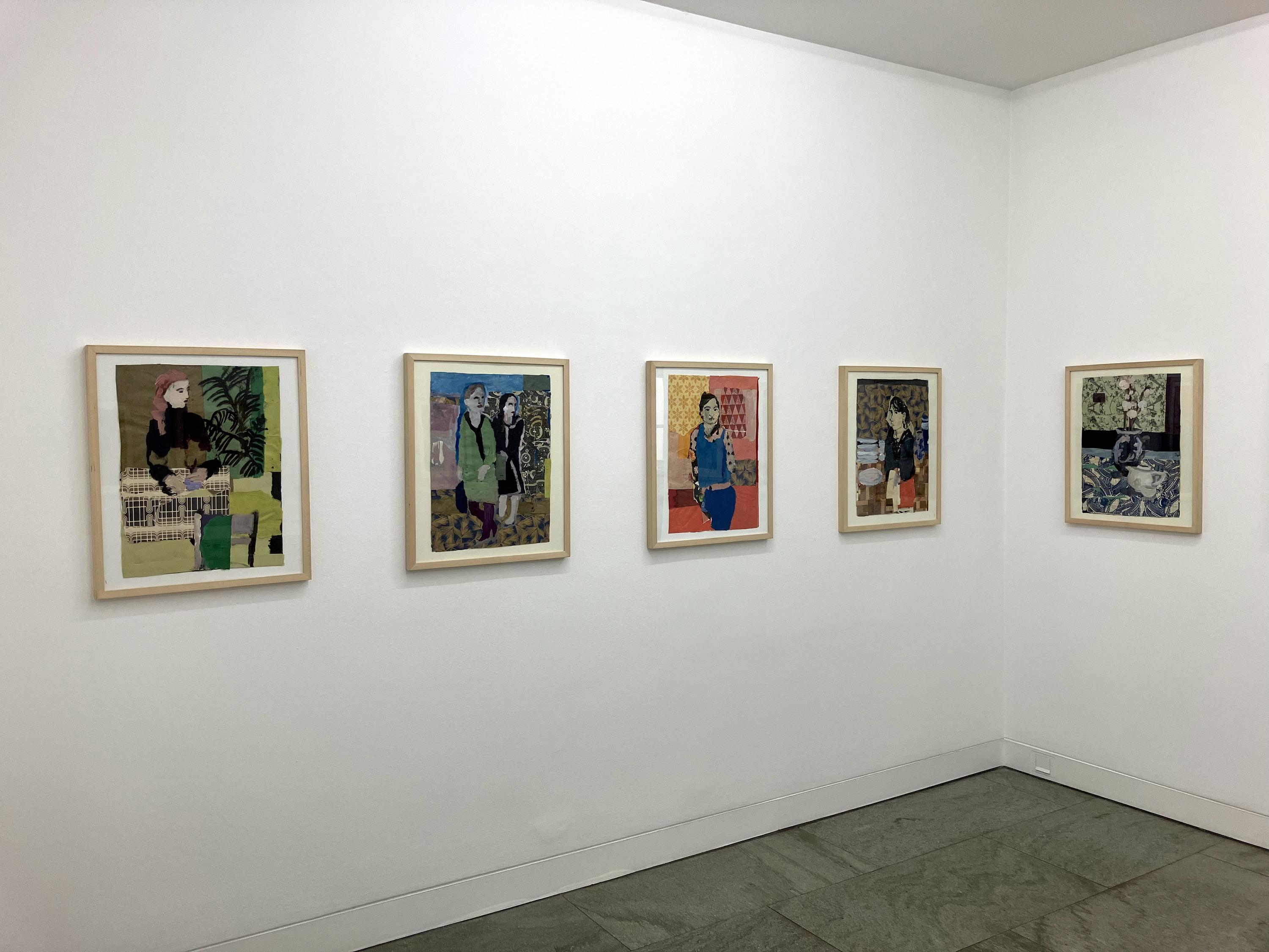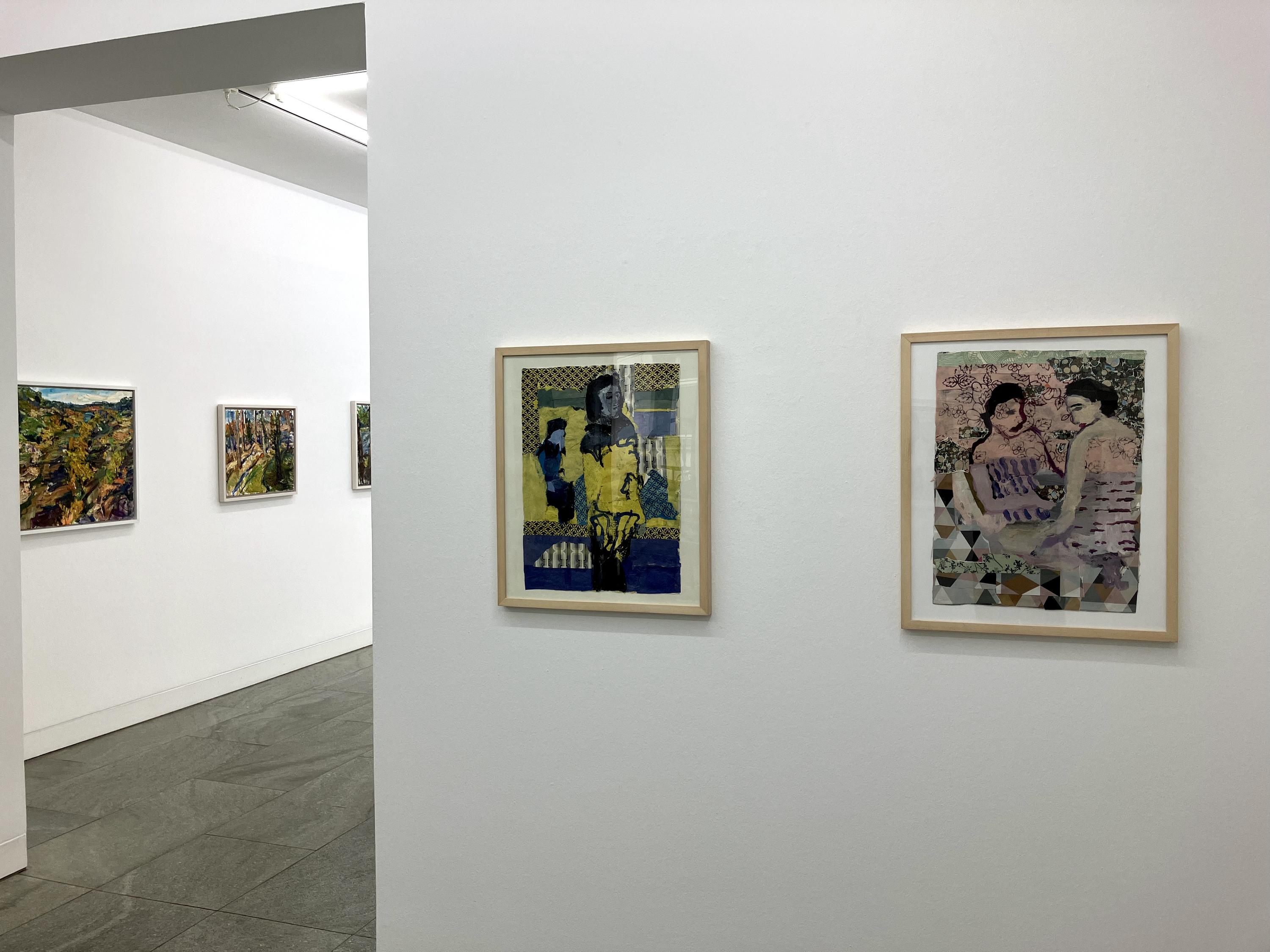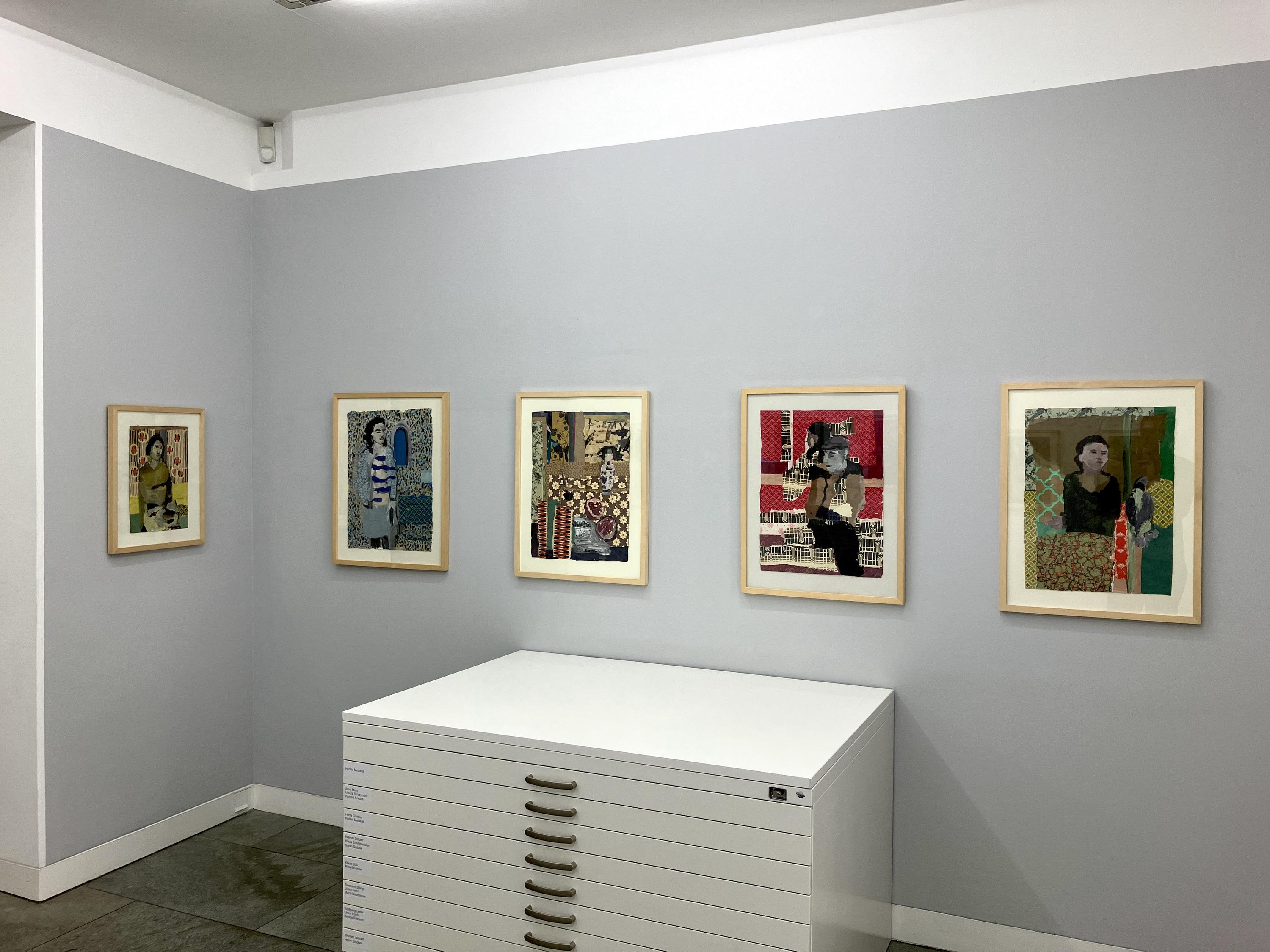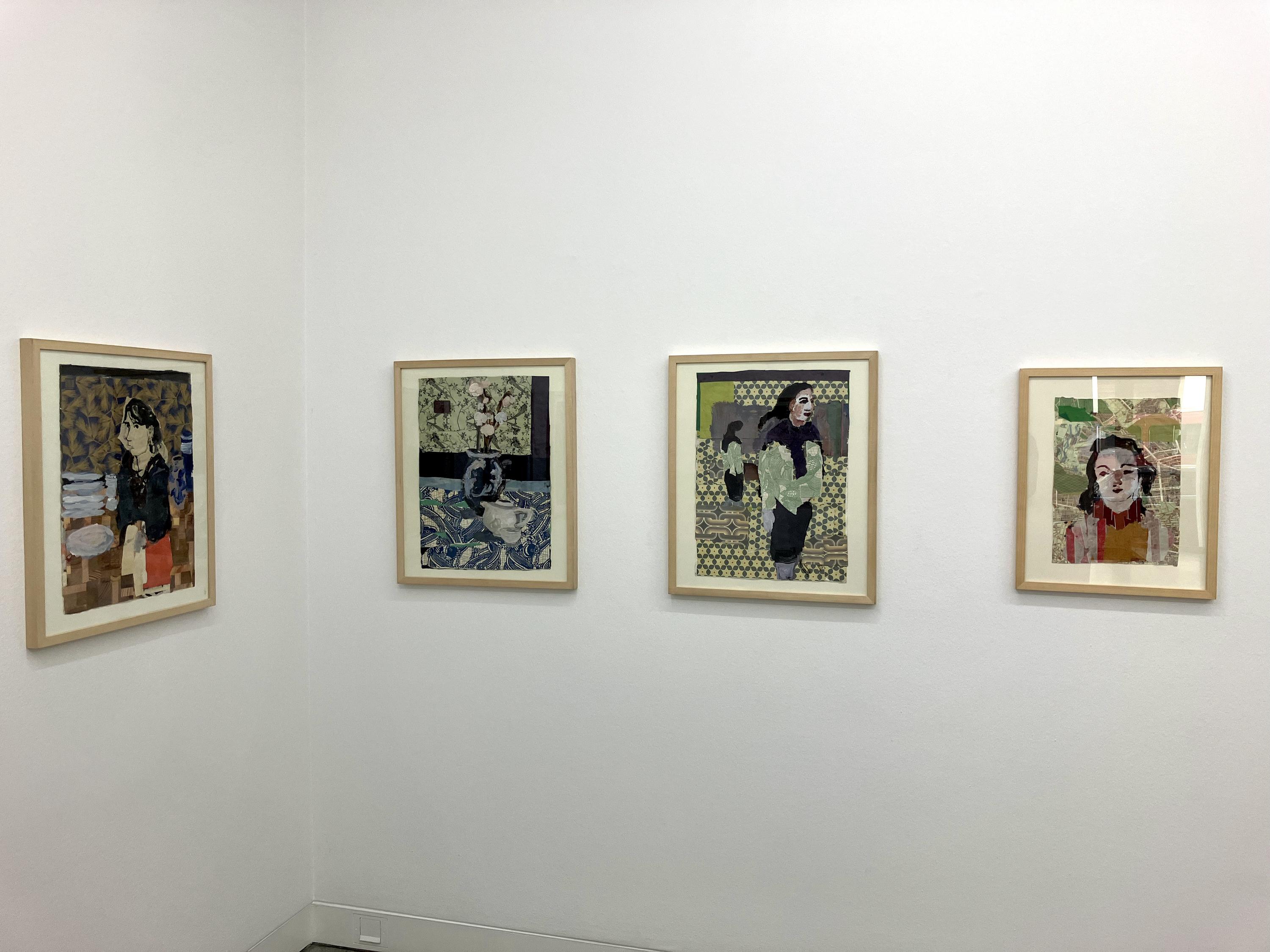 Ulrike Pisch (geb. 1980) beschäftigt sich seit längerem neben der Malerei mit der Technik der Collage, kombiniert mit Übermalungen. Meist ist eine einzelne Figur dargestellt, die durch ihre Haltung und den lebendig und subtil collagierten Hintergrund eine ganze Szene erzählt.
