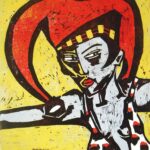 Farbholzschnitt, verlorene Form mit Zwischenübermalung