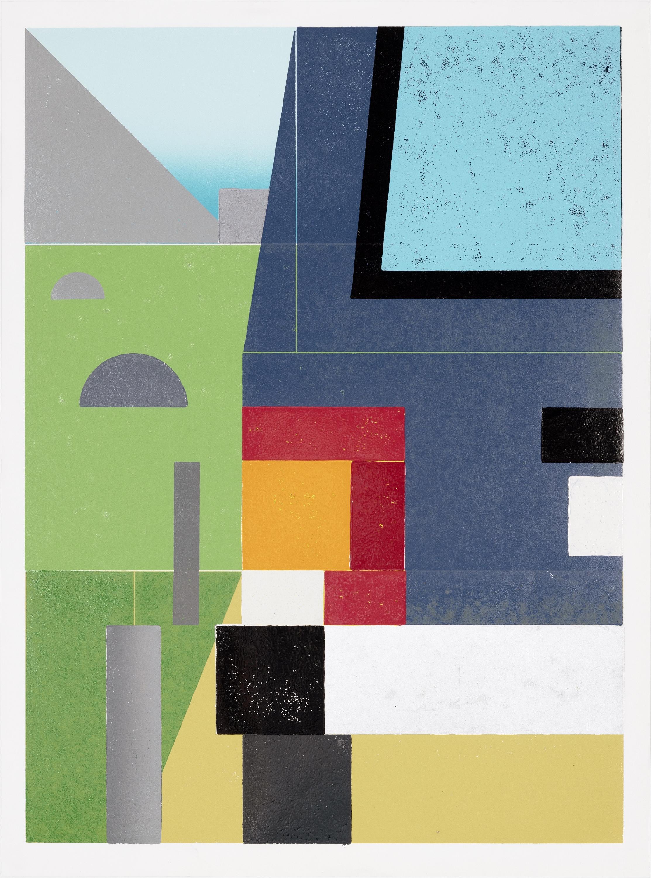 Holzschnitt 6-farbig und Lack auf Bütten