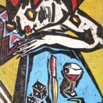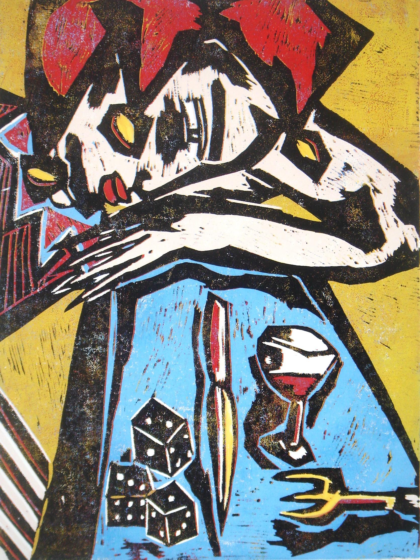 Farbholzschnitt, verlorene Form mit Zwischenübermalung